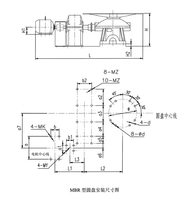 MBR 型圓盤給料機(jī)安裝圖及尺寸