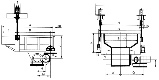 座式安裝時,安裝給料機底架的地面應(yīng)平整。底架安放平整后,將支承彈簧放在彈簧支座上,使彈簧的內(nèi)孔對準(zhǔn)彈簧支座上的凸臺、再將給料槽安放在彈簧上,給料槽應(yīng)橫向水平,每端左右兩側(cè)的支座高度應(yīng)相同,誤差不得超過3mm。所有彈簧必須處于垂直狀態(tài)。如有扭斜,應(yīng)調(diào)整彈簧下面支座的位置。可以用加墊片的方法調(diào)整給料槽的傾角和橫向水平度。